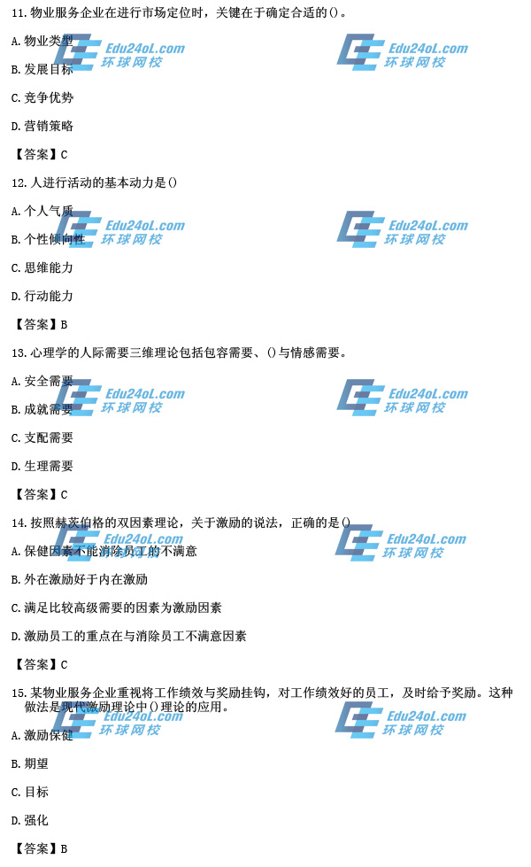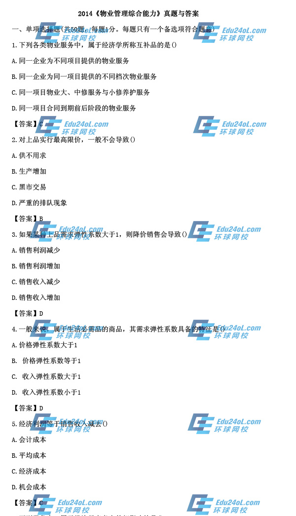 - 2014年物業管理師考試《經營管理》真題點評(完整版)2014-09-12
