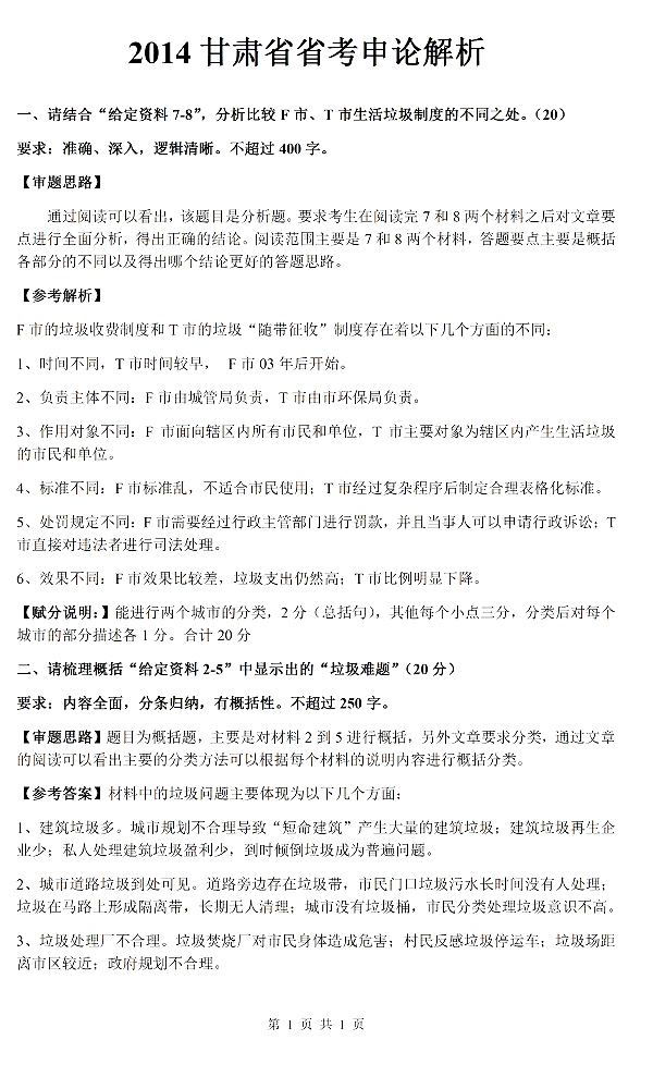 摘要 2014年甘肅省公務員考試已落下帷幕,環球網校公務員考試頻道小編整理2014年甘肅省公務員考試申論真題答案供廣大考生參考~