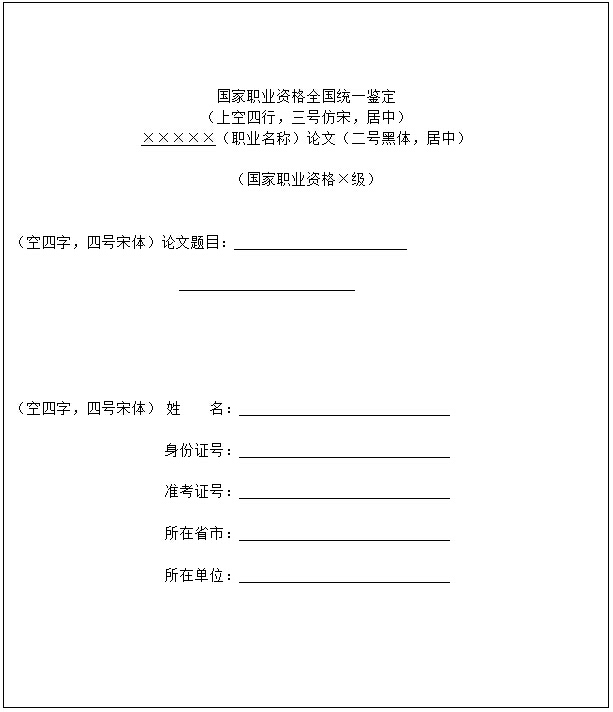 論文采取考生自選題方式。選題應(yīng)根據(jù)國家職業(yè)標(biāo)準(zhǔn)要求,參考培訓(xùn)教程,同時(shí)結(jié)合考生所在單位或有關(guān)行業(yè)實(shí)際工作的情況自行擬定。