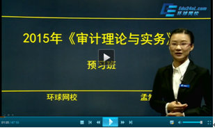 2015年審計(jì)師考試備考已經(jīng)開(kāi)始,環(huán)球網(wǎng)校2015年中級(jí)審計(jì)師預(yù)習(xí)班課程已開(kāi)通,網(wǎng)校老師孟然老師將帶領(lǐng)廣大考生朋友們一起進(jìn)行2015年中級(jí)理論與實(shí)務(wù)預(yù)習(xí),希望大家可以高效備考、一次通關(guān)!