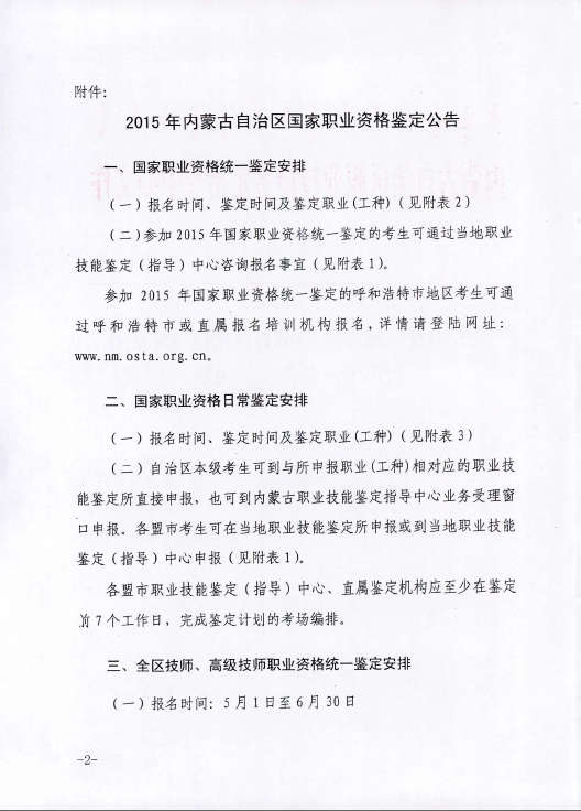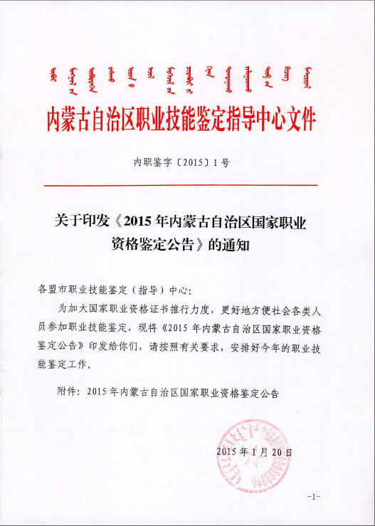內蒙古2015年秘書資格統一鑒定公告