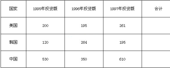 (1)分別計算各國三個年度的投資總額的操作方法為( )。