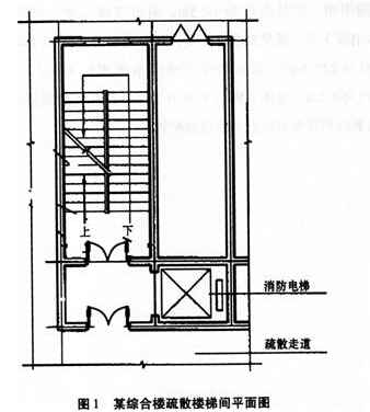 21、某綜合樓,建筑高度為76.5m,其中1~3層為商場,4~7層為餐飲區,8~21層為賓館,圖1為其中一個疏散樓梯的平面圖,請分析以下問題:
