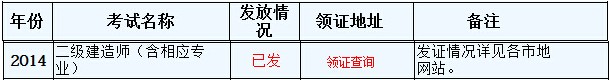 摘要 2015年考試報名2014年成績查詢2014年合格標準歷年真題匯總2015年精品VIP2014年合格證書 【摘要】2014年二級建造師考試證書領取工作正在進行中,環球網校二級建造師考試頻道小編會為大家及時更新2014年各省市二