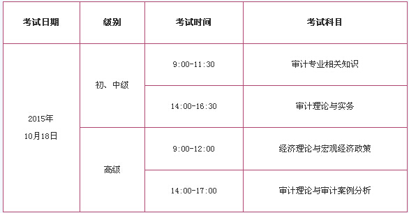 (二)2015年度審計專業技術初、中、高級資格考試大綱可在審計署考試中心網站下載,網址http://www.auditexam.cn。