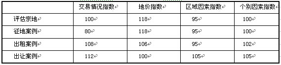(5)當(dāng)?shù)赝蛔诘亻_(kāi)發(fā)程度不同時(shí)的地價(jià)差異情況為:“五通一平”時(shí)地價(jià)比“三通一平”時(shí)地價(jià)高l00元/┫,“七通一平”時(shí)地價(jià)比“三通一平”時(shí)地價(jià)高150元/┫。