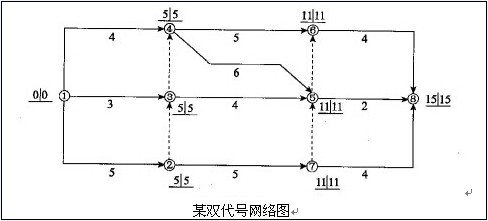 87.某分部工程雙代號(hào)網(wǎng)絡(luò)計(jì)劃如下圖所示(時(shí)間單位:d),圖中已標(biāo)出每個(gè)節(jié)點(diǎn)的最早時(shí)間和最遲時(shí)間,該計(jì)劃表明( )。