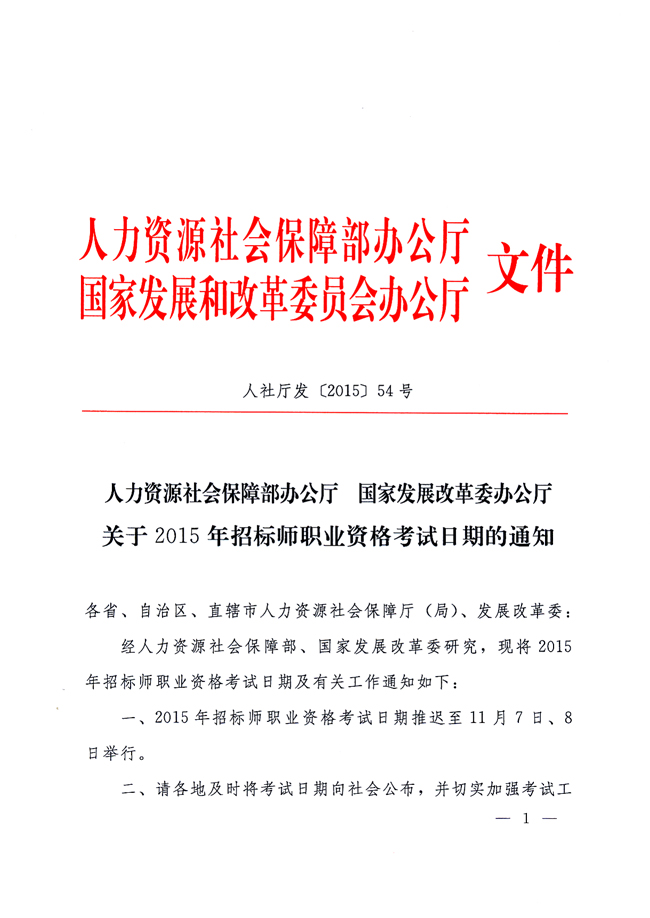 4月13日,人力資源社會(huì)保障部辦公廳、國(guó)家發(fā)展改革委辦公廳下發(fā)《關(guān)于2015年招標(biāo)師職業(yè)資格考試日期的通知》(人社廳發(fā)[2015]54號(hào)),將首次招標(biāo)師職業(yè)資格考試日期推遲至11月7日-8日舉行。請(qǐng)廣大考生注意時(shí)間調(diào)整,提前做好考前準(zhǔn)備。