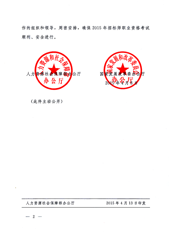 關(guān)于轉(zhuǎn)發(fā)《人力資源社會(huì)保障部辦公廳 國(guó)家發(fā)展改革委辦公廳<關(guān)于2015年招標(biāo)師職業(yè)資格考試日期的通知>》的通知