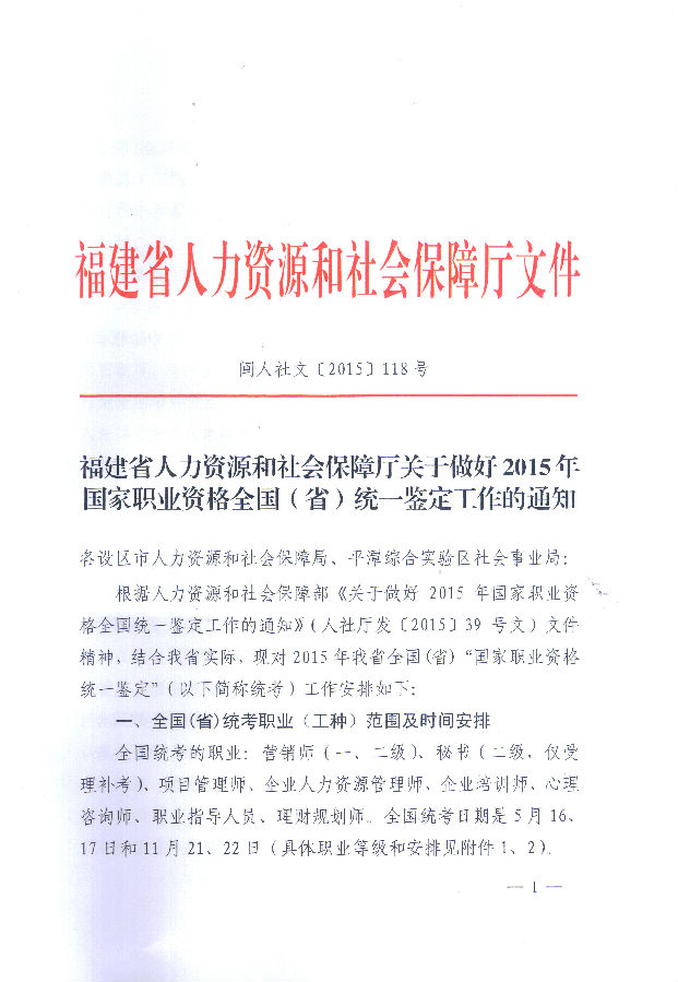福建省2015年企業(yè)培訓(xùn)師全國(guó)統(tǒng)考公告