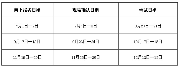2015年下半年網上報名日期、現場確認日期及考試日期安排表