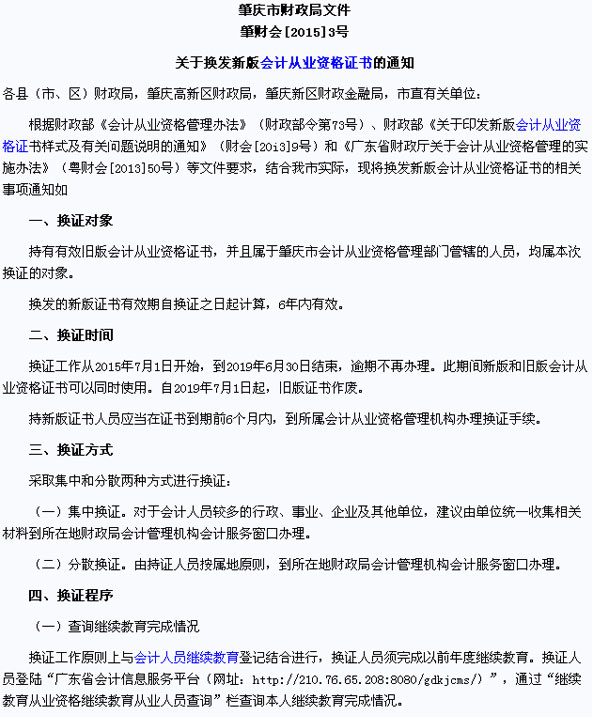 摘要 【摘要】環球網校為方便考生領取證書特分享了2015肇慶換發新版會計從業資格證書領取的通知、領取方式、所需材料等,詳情如下,希望可以幫到大家,網校會繼續關注會計從業資格考試,更多資料敬請關注環球會計