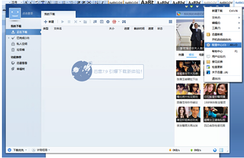 在迅雷下載工具中點(diǎn)擊菜單欄里的<配置中心>