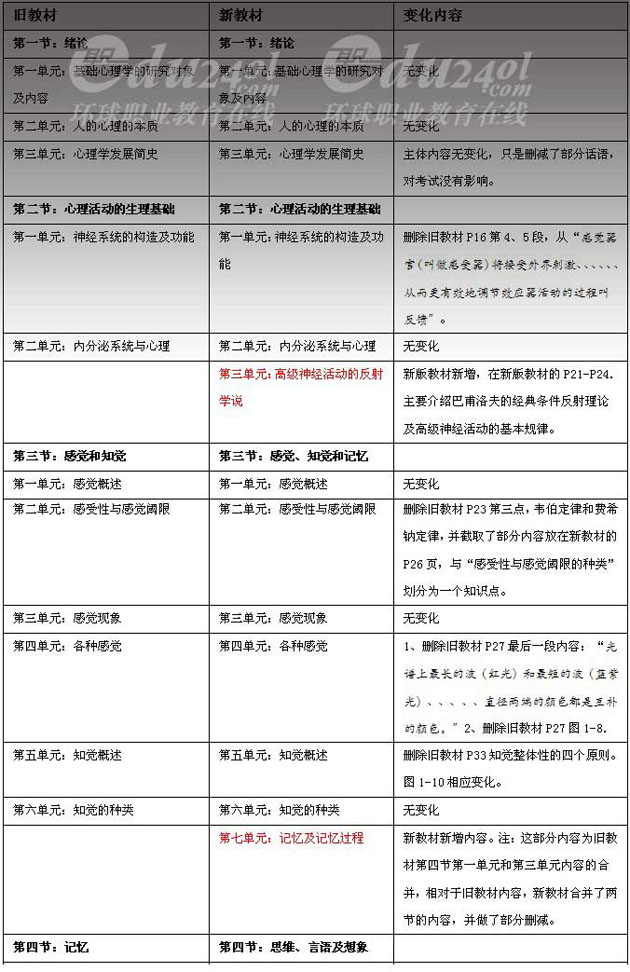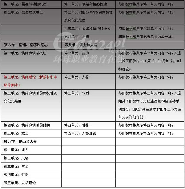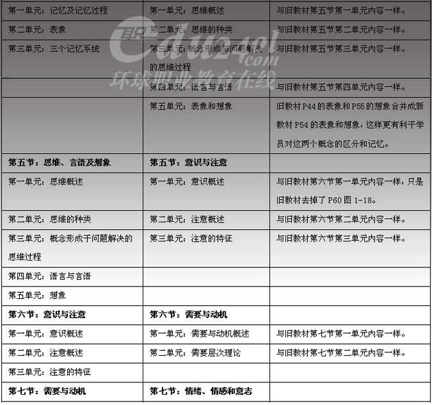 心理咨詢師考試第一章 基礎心理學的新舊教材對比表