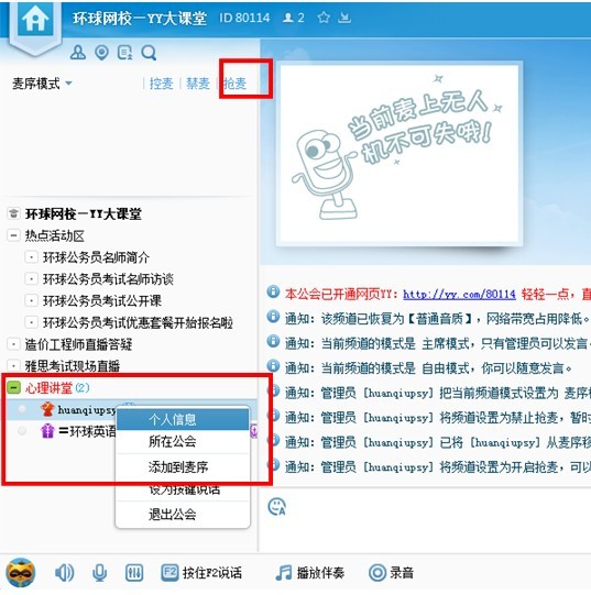 說明:學員5月13日進入環球網校心理咨詢師直播時,直接輸入yy用戶名和密碼,進入找到