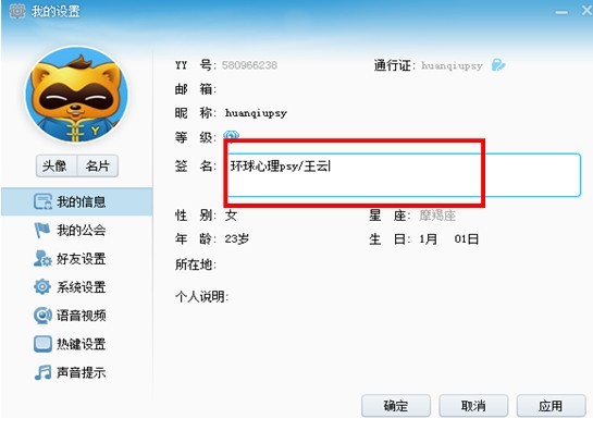 8、修改yy昵稱。