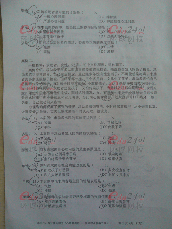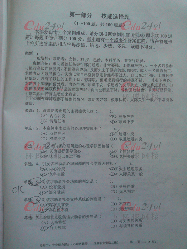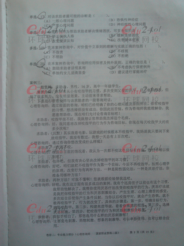 2013年5月心理咨詢師二級專業(yè)技能考試真題