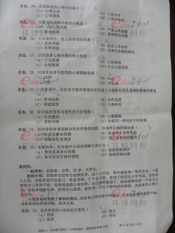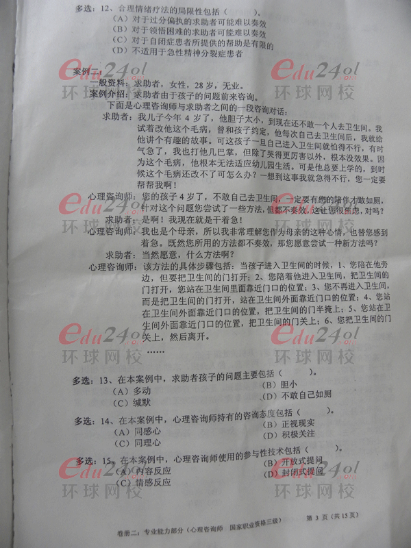 2013年5月心理咨詢師考試三級專業技能考試已經結束,為了讓考生盡早了解此次考試情況。環球網校在第一時間為考生及學員整理了真題,近期網校將安排上線,全套真題點評也將于近期安排。請大家隨時關注!網校預祝學員們能夠取得好成績。