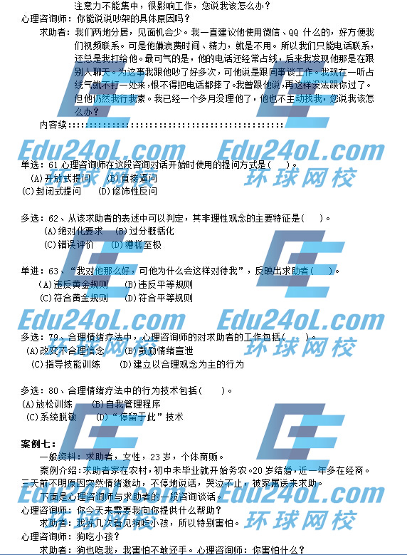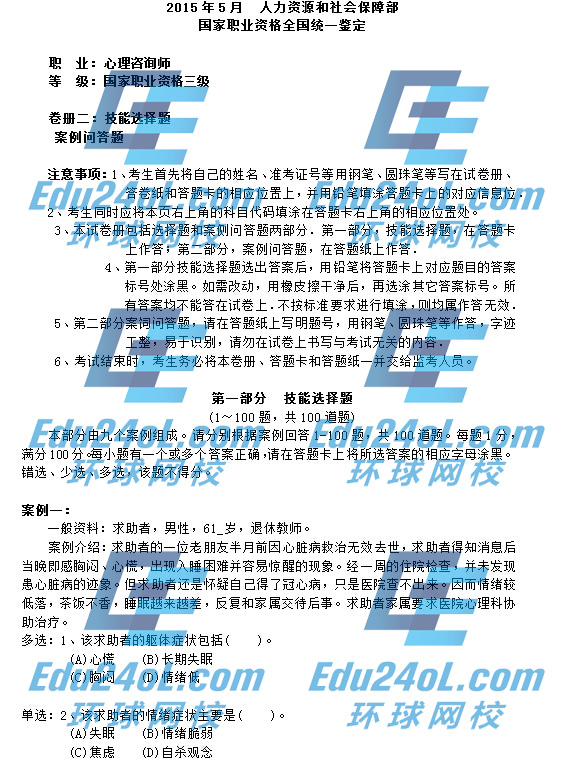 環球網校獨家:2015年5月三級心理咨詢師考試專業技能真題