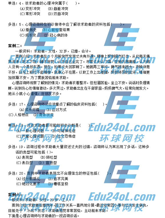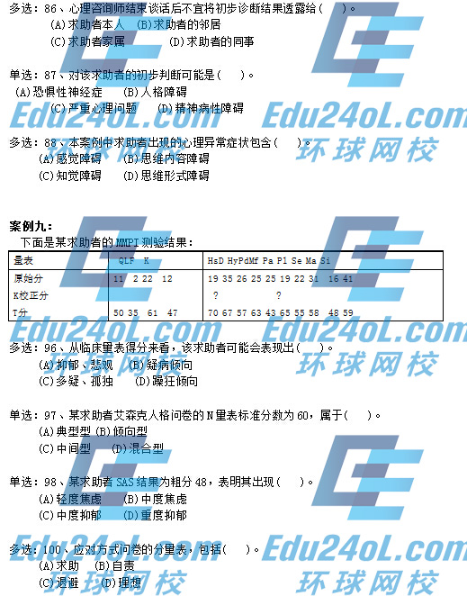 2015年5月全套試題和答案視頻解析,詳見環球心理網輔導套餐真題解析班。 QQ咨詢:377646036