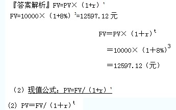 【例題】某投資者投資10000元于一項期限為3年、年息8%的債權,按復利計算該項投資的終值為( )元。