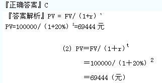 【例題】某投資者的一項投資預計兩年后價值100000元,假設收益率為20%。則該項投資的原始投資額應為( )元。