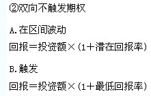 【例題】一定投資期間內,若掛鉤外匯在整個期間未曾觸及買方所預先設定的兩個觸及點,則買方將可以獲得當初雙方所協定的回報率的是( )。