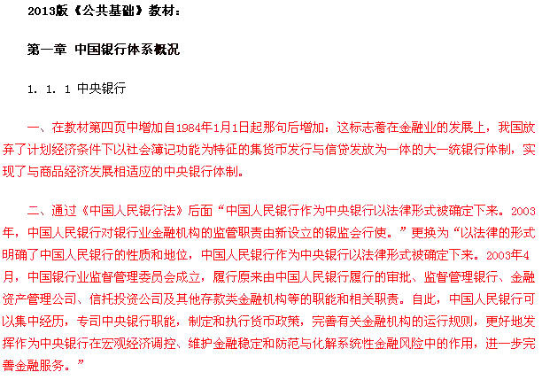 摘要 2013年銀行從業資格考試《公共基礎》教材變化