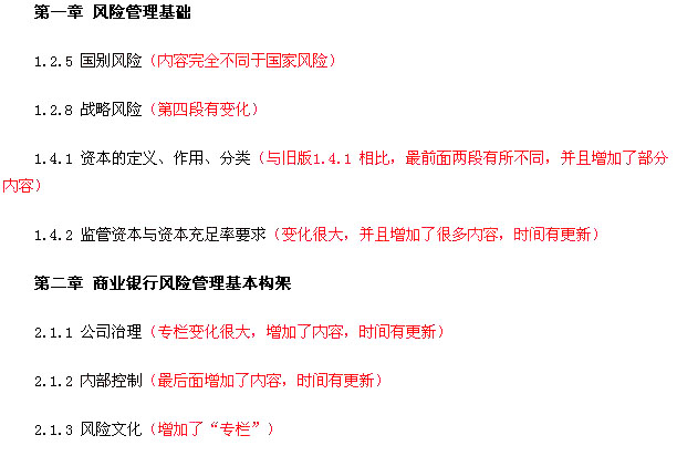 摘要 2013年銀行從業資格考試《風險管理》教材變化
