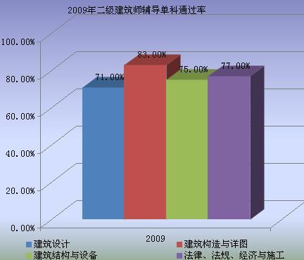 環球網校2009年二級建筑師輔導各科通過率分別為: