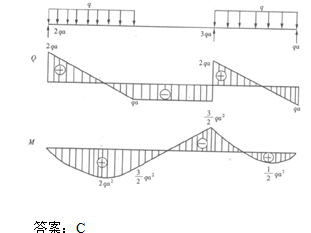 提示: (A) QE右=0,(B)QD右/2,(C)Mc=0,(D)MD=Pa/2,只有C正確。