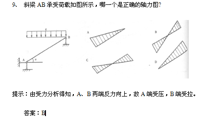A 受拉軸力 B 受壓軸力 C 無(wú)內(nèi)力 D 剪力