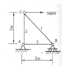 2. 圖示桁架桿1、桿2、桿3所受的力分別為( )。