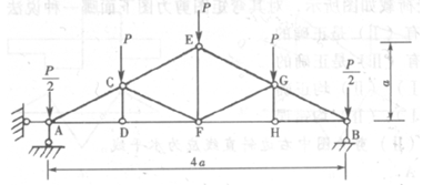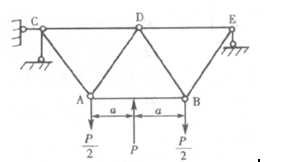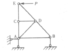 提示:用節(jié)點(diǎn)法,通過(guò)E點(diǎn)分析可知CE桿受壓, CD為零桿,AC桿受力性 質(zhì)與CE桿相同。