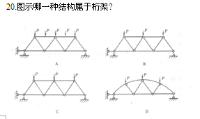 提示:A圖上弦桿中間有外力作用,B圖下弦桿不是二力桿,D圖上弦桿不是二力桿,均不符合桁架的條件。
