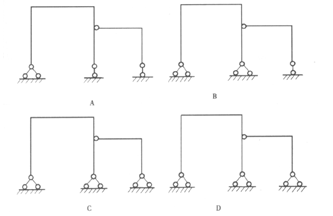 提示: 圖示結構中只有A圖是靜定的。