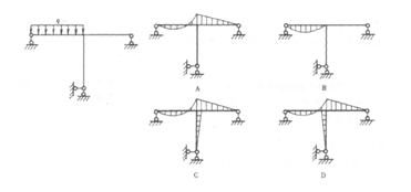 提示:由受力分析可知,無水平反力,故豎桿中不應有彎矩,C、D圖不對,而B圖顯然是簡支梁的彎矩圖,也是錯的。