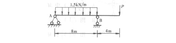 23. 外伸梁受力如圖所示,為了不使支座A產生垂直反力,集中荷載P的值應為( )kN。