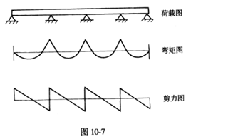 (2)多跨連續梁在均布荷載作用下的彎矩和剪力(圖10-7)。