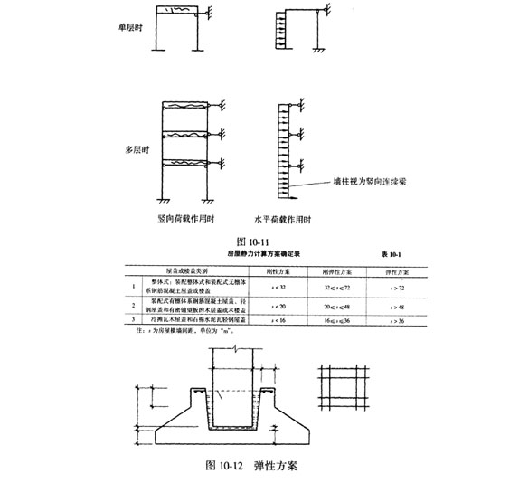 磚砌體房屋的靜力計算有三種計算方案(見表10―1):