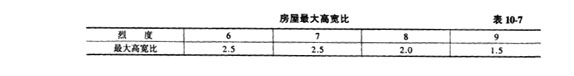 3.多層砌體房屋總高度與總寬度的最大比值,宜符合表10-7(《抗規》表7.1.4)的要求。