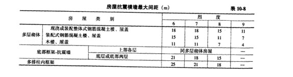 4.房屋抗震橫墻的間距不應超過表10-8(《抗規》表7.1.5)的要求。