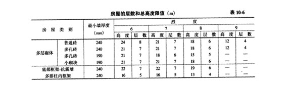 1.多層砌體房屋的高度和層數應按表10-6(《建筑抗震設計規范》(GB50011一2001), (以下簡稱《抗規》)表7.1.2的規定采用。