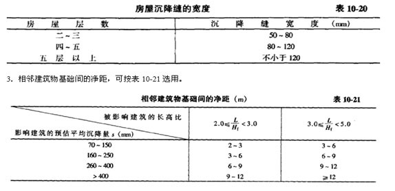 沉降縫應有足夠的寬度,縫寬可按表10-20選用。