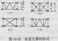 (2)屋架和天窗架的垂直支撐,可參考圖10-35(a)-(d)的形式選用;其中,圖10―35(c)一般用于天窗架兩側的垂直支撐,圖10-35(d)為兼作檁條的垂直支撐。