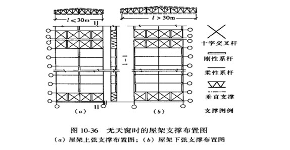 3.屋蓋結構支撐是屋蓋結構的一個組成部分,它的作用是將廠房某些局部水平荷載 傳遞給主要承重結構,并保證屋蓋結構構件在安裝和使用過程中的整體剛度和穩定性。
