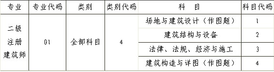 ㈡ 二級注冊建筑師執業資格專業、類別、科目及代碼如下