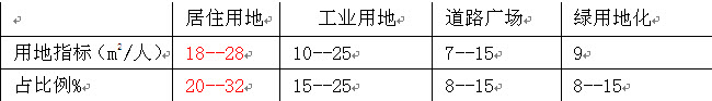 11.居住、工業、道路廣場和綠地四大類用地總和占建設用地的60-75%。