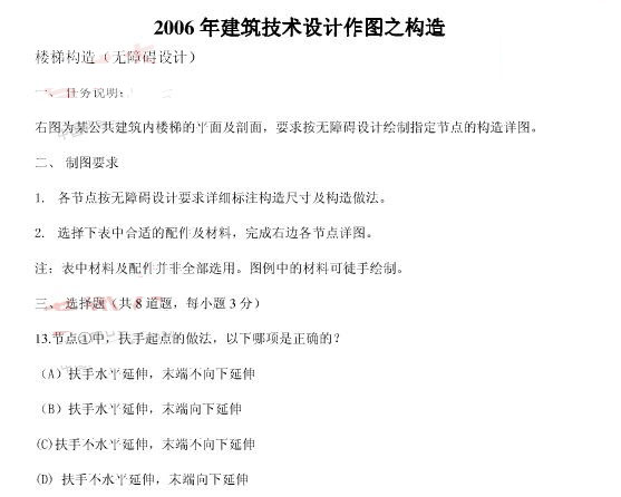 2006年一級建筑師考試技術設計作圖(構造)真題