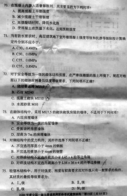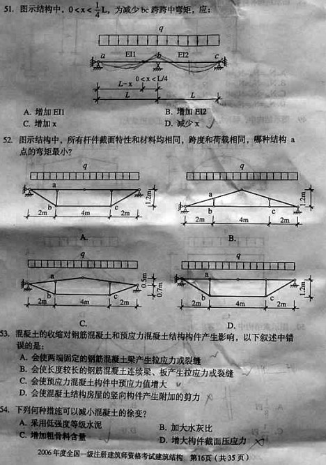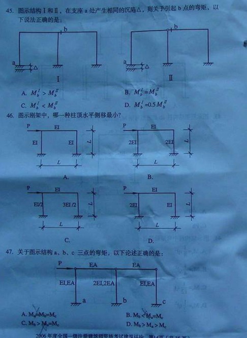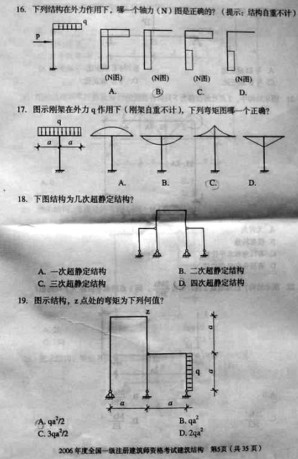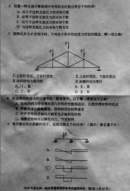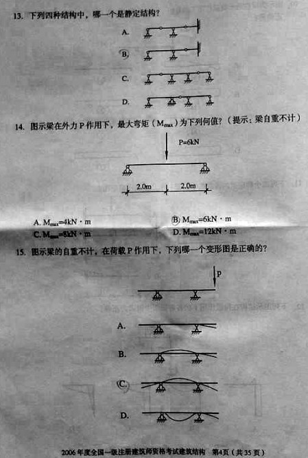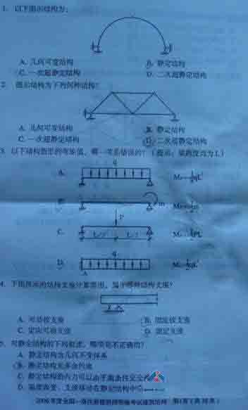 摘要 2006年一級建筑師考試《建筑結構》真題,供廣大考友練習提高。